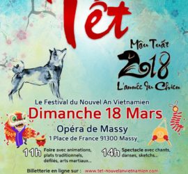 Après avoir bien picoré, Seigneur le Coq cède la place à Monseigneur le Chien qui va trôner toute cette année ! Accueillons-le avec tous les honneurs, lors du Festival du Nouvel An du Chien de Terre organisé par l’Association Générale des Etudiants Vietnamiens de Paris Le dimanche 18 mars 2018 de 11h à 18h Opéra de Massy 1 place de France, 91300 Massy. Accueillons ensemble la nouvelle année du Chien de Terre, avec Joie et Espoir !! Foire de 11h à 14h – Entrée libre : […]